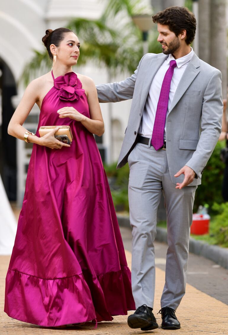 La novia lució divina con un vestido confeccionado por la diseñadora Florencia Nicora, en encaje blanco, cuello halter, y velo. Ella fue maquillada en La Pelu por Ceci Pompa y peinada por Alexis González. El ramo preparo La Efe, con flores blancas naturales.