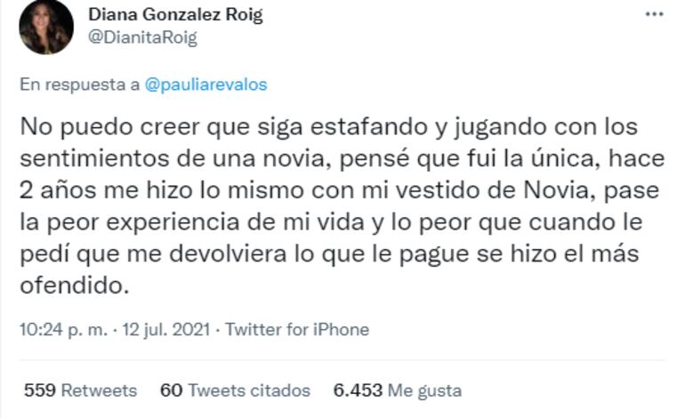 La primera fue Diana González Roig: “Pensé que fui la única, hace 2 años me hizo lo mismo con mi vestido de Novia, pase la peor experiencia de mi vida”, escribió.