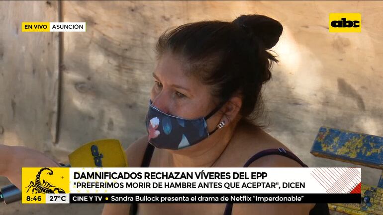 Este artículo tiene 4 años de antigüedad “Mejor morir de hambre que aceptar” dicen las personas damnificadas que se encuentran en el microcentro de Asunción y manifestaron que no recibirán los víveres que fueron solicitados por el grupo criminal EPP a los familiares del joven secuestrado el lunes último en el norte del país. Asimismo, aclaran que esa no es la forma, porque detrás de todo esto hay una familia que está llorando la ausencia de un ser querido.