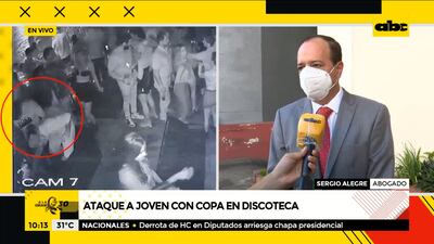 Este artículo tiene 3 años de antigüedad El abogado Sergio Alegre acaba de presentarse ante el Ministerio Público para poner a disposición de los investigadores a René Olmedo, sindicado como autor de la agresión a una joven en la disco Morgan, ocurrida el sábado pasado. Respecto a lo ocurrido en la discoteca de Villa Morra, Sergio Alegre dijo que René Olmedo no tuvo intención de agredir a nadie, que ni siquiera conoce a la víctima y que no se percató de que la copa que arrojó había lastimado a alguien.