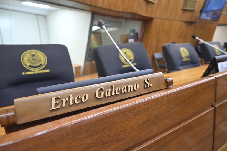 Banca vacía del diputado Erico Galeano, quien no se presentó en la sesión de este miércoles. Por unanimidad, la Cámara le retiró sus fueros.Arcenio Acuña Rojas