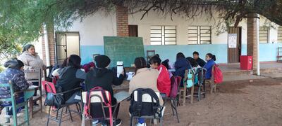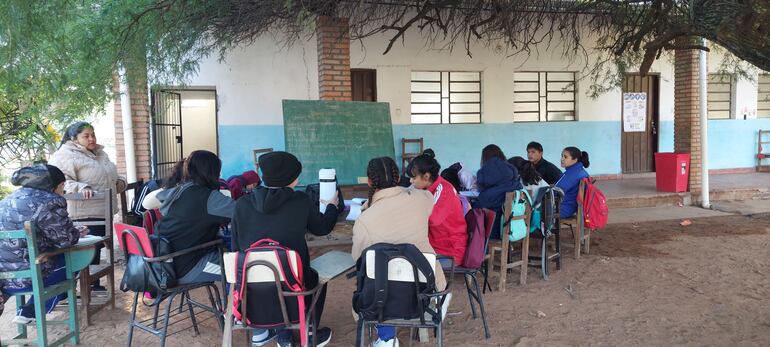 AUDIO: Lamentable: estudiantes de Chaco’i dan clases bajo un árbol en pleno frío y comparten la pizarra