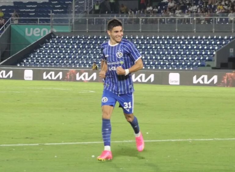 Marcelo Acosta, jugador de Sol de América, festeja un gol en el partido frente a Olimpia por la segunda fecha del torneo Apertura 2024 del fútbol paraguayo en el estadio Defensores del Chaco, en Asunción.Gentileza, Club Sol de América