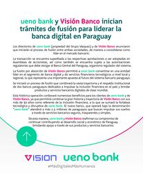 Comunicado conjunto de Ueno Bank y Visión Banco anunciando la fusión.