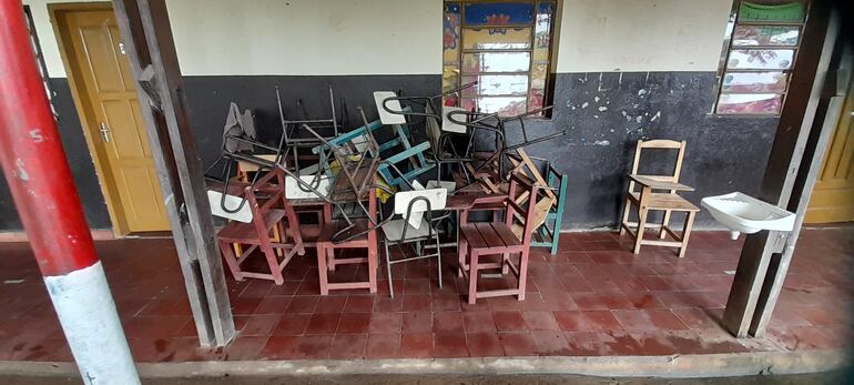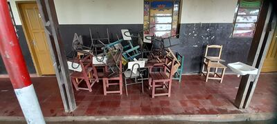 Precarios pupitres en Escuela Básica N° 131 Gaspar Rodríguez de Francia del barrio San José Mi de Ayolas. Miguel Rodriguez 17-01-2024
