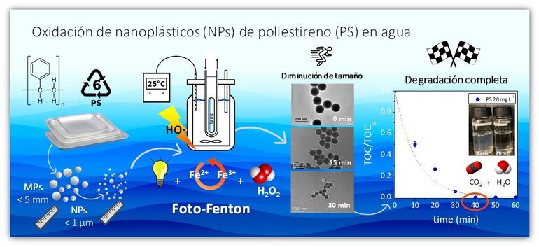 Degradar nanoplásticos en agua en el proceso foto-Fenton