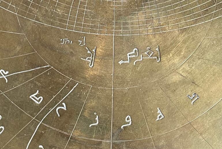 El astrolabio presenta líneas de oración musulmanas y nombres de oraciones dispuestos para garantizar que sus usuarios originales mantuvieran el tiempo para realizar sus rezos diarios.