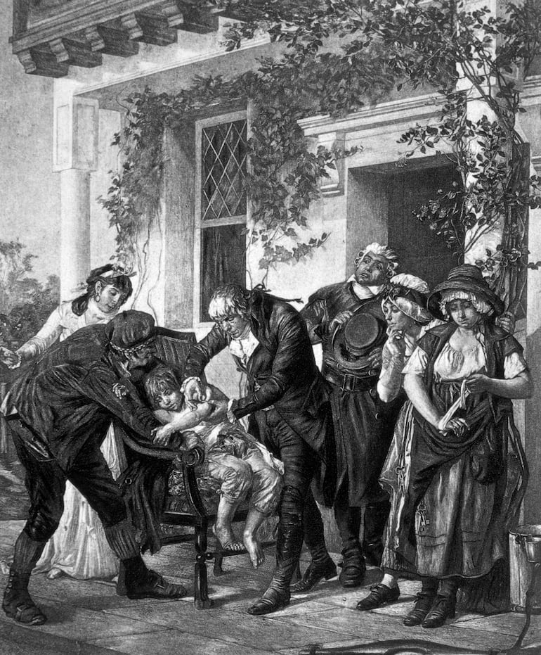 El primer avance significativo en la lucha contra la viruela ocurrió a fines del siglo XVIII, con la creación de la primera vacuna por Edward Jenner en 1796. Jenner observó que las ordeñadoras que habían contraído viruela bovina rara vez contraían viruela humana. Utilizó este principio para inocular a un niño con viruela bovina y luego le expuso a la viruela humana, demostrando que la vacunación podía prevenir la enfermedad.