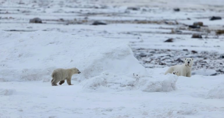 La población de osos polares del oeste de la bahía de Hudson ha disminuido un 30% en unas pocas décadas, pasando de unos 1.200 individuos en los años de 1980 a 800 en la actualidad, debido en particular al derretimiento acelerado del hielo, esencial para su supervivencia.