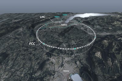 El Futuro Colisionador Circular (FCC) tendría una circunferencia de 91 kilómetros y, si el Consejo del CERN aprueba de forma definitiva su construcción, lo que está previsto que recién suceda en 2028, podrá reemplazar al actual Gran Colisionador de Hadrones (LHC) para mediados de 2040, como su principal acelerador de partículas, con una potencia diez veces mayor a la actual.