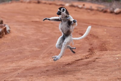Lo que para nosotros “baila”, para el sifaka es, en realidad, un momento de exposición en el que intenta ir de un refugio arbóreo a otro lo más rápido posible.