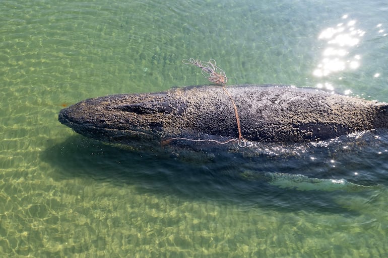 Agregó que la ballena se encuentra en “muy mal estado físico”, muestra una vitalidad claramente menor y ya desde el domingo no emite sonidos, pero que harán un intento por “animar” al animal a moverse por sí mismo.