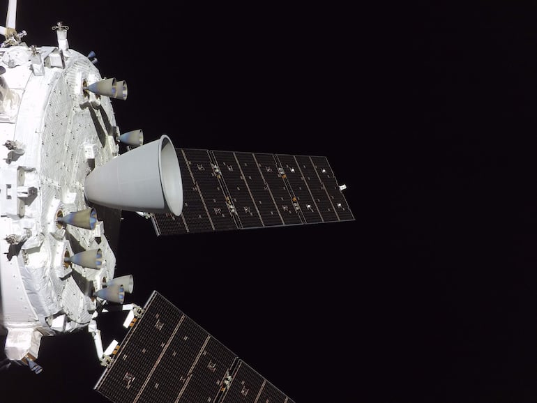 La NASA hizo ajustes en esta pieza después de que en Artemis I, una misión no tripulada que sobrevoló en 2022 la Luna, el escudo sufriera una erosión inesperada durante la reentrada.