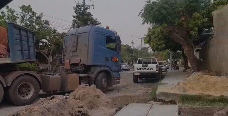 Una obra de badén se construye sobre las calles Lázaro González y Joel Estigarribia, del barrio Ytay de Asunción, la primera es paralela a Santa Teresa y une la zona de Madame Lynch con Laguna Grande. Camiones de gran porte entran y salen, atajando el tránsito y apeligrando las viviendas aledañas, además de destruir la calle transversal.