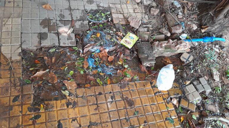 Este artículo tiene 2 años de antigüedad La pérdida de agua en esta vereda ubicada en De La Residenta casi Avda. Perú, Asunción, ya está hace tiempo y se va destruyendo. También se acumula basura en la zona.