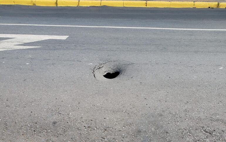 Este artículo tiene 2 años de antigüedad Este cráter se puede observar en Mcal. Estigarribia y Estados Unidos, Asunción. Podría ocasionar accidentes y representa un peligro para las personas que circulan por la zona.