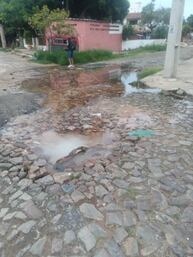 Estos caños rotos de la Essap están hace más de un mes en Overava y Mayor Perinciolo, Asunción. La calle también está destrozada por esto.