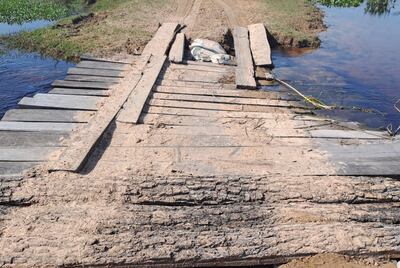 Este puente en Piretu Kue, departamento de Ñeembucú, ya está a punto de caerse y es un riesgo para todos los pobladores de la zona.