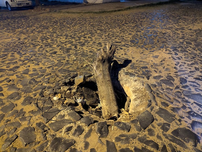 Durante la noche el agujero no es tan visible, salvo por el tronco que sobresale. Esto claramente podría ocasionar un grave accidente de tránsito.