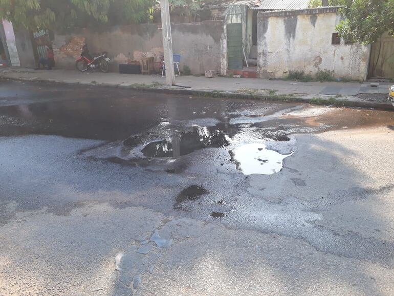 Caño roto en barrio Obrero