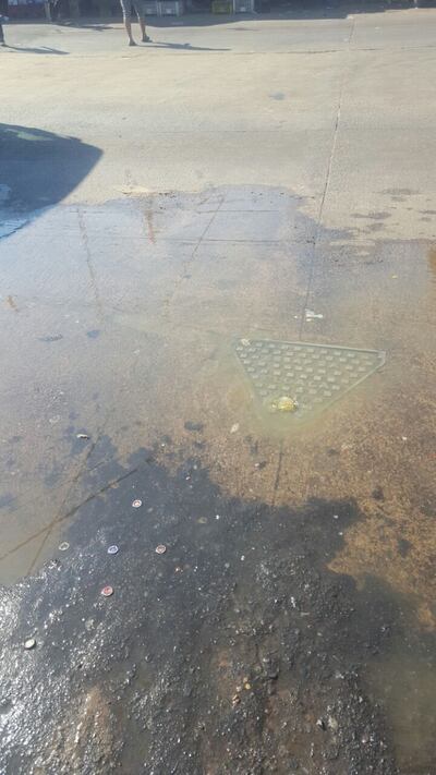 Desagüe colapsado en el asfalto