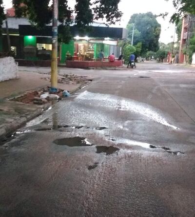 Este artículo tiene 7 años de antigüedad Lamentable estado de la calle Prof. Alfonso Campos y Dr. Centurión, del barrio Vista Alegre de la ciudad de Asunción. Desidia total de la Essap al permitir que se llegue a este nivel de pérdida de agua, a pesar de reclamos realizados más de 10 días atrás.