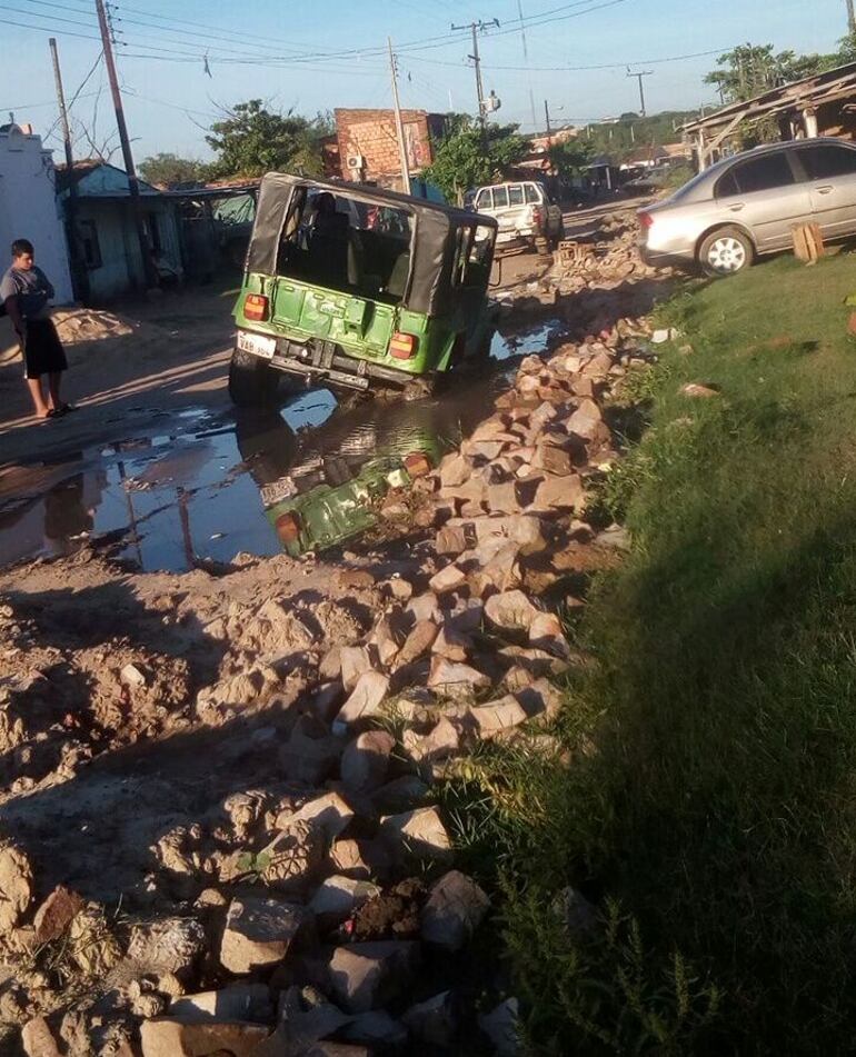 Los autos y cualquier otro medio de transporte se quedan en los canales abiertos dejados por la Essap.