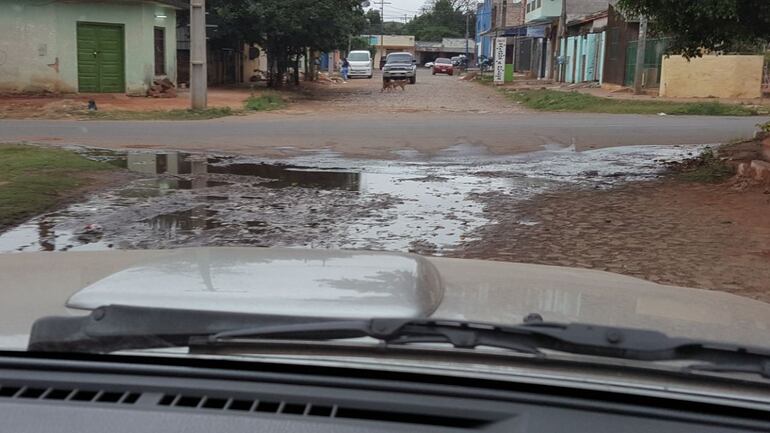 El agua ya está abarcando varias cuadras e inundando muchas calles. Con razón la Essap dice que tiene pérdidas y como no va a tener, si a pesar de los varios reclamos que ya hicimos no vienen para arreglar.