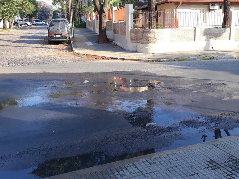 Este artículo tiene 7 años de antigüedad Llevamos esperando 15 días la reparación de esta cañería rota de la Essap. Además del perjuicio que causa a los automóviles, favorece la procreación de mosquitos. Se ha formado un cráter que va creciendo cada día más.