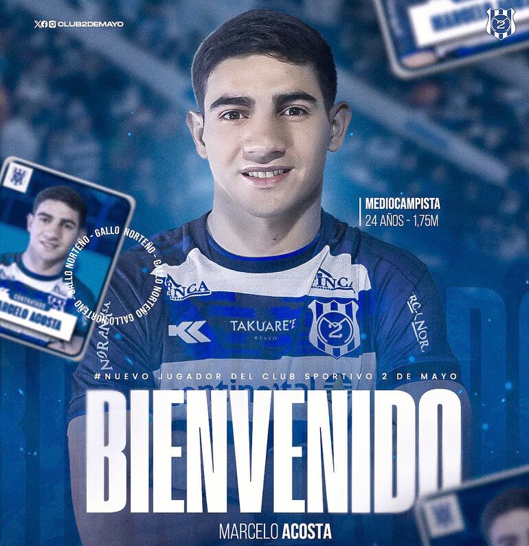 Marcelo Acosta es la tercera incorporación del 2 de Mayo para la segunda parte del año, después de Rodrigo Ruiz Díaz y Sergio Fretes.