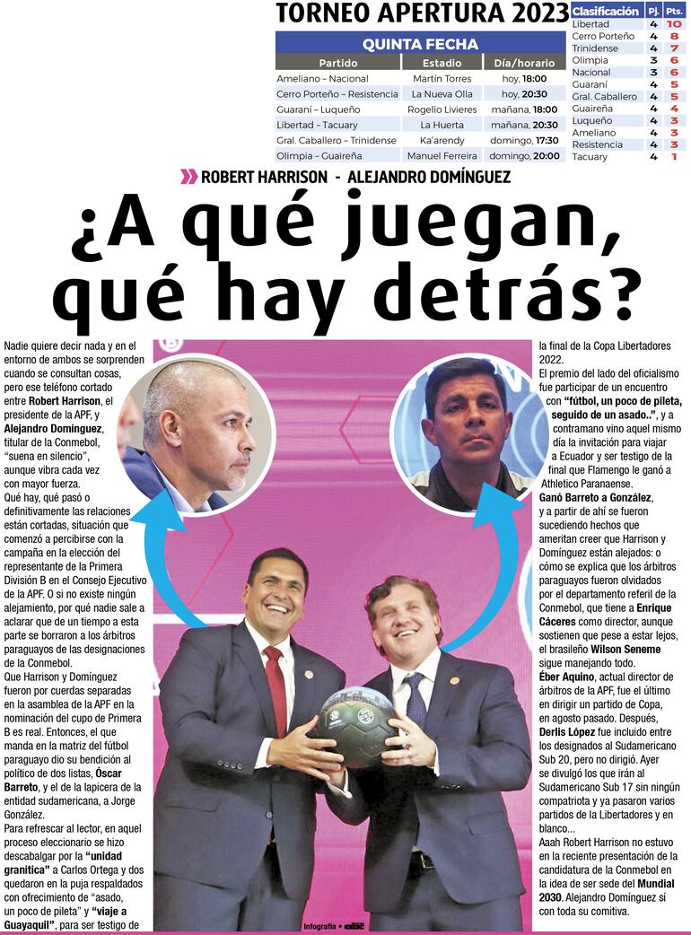 Que Robert Harrison y Alejandro Domínguez fueron por cuerdas separadas en la asamblea de la APF en la nominación del cupo de Primera B es real. Entonces, el que manda en la matriz del fútbol paraguayo dio su bendición al político de dos listas, Óscar Barreto, y el de la lapicera de la entidad sudamericana, a Jorge González.