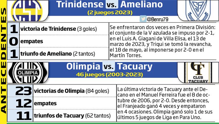 Por otro lado, en el primer duelo sabatino, en Santísima Trinidad a las 16:00, en el Martín Torres, se enfrentan Sportivo Trinidense y Sportivo Ameliano.