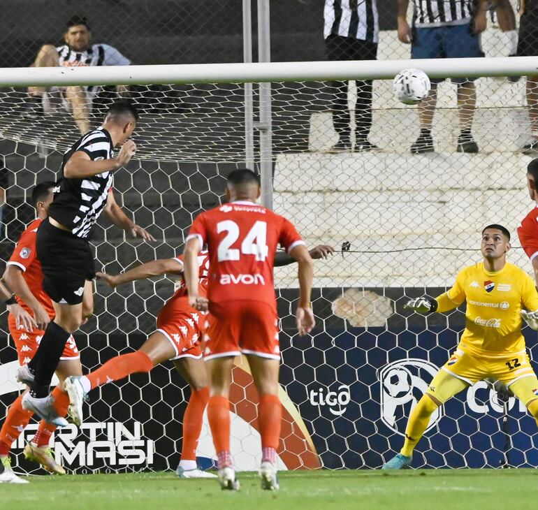 Un cabezazo de Óscar Cardozo en el tramo final de la primera etapa inclinó la balanza a favor de Libertad, que no era muy superior a Nacional, pero fue el que mostraba un poco más de claridad al momento de posicionarse en zona de ataque.