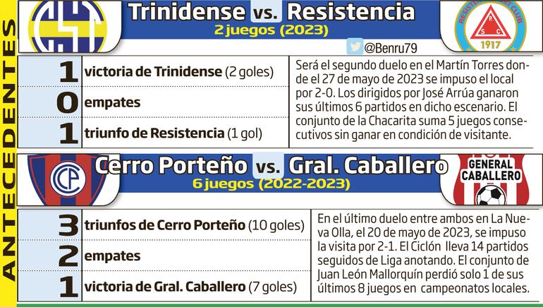En Santísima Trinidad, el duelo será entre dos equipos que llegan con momentos distintos. Trinidense tratará de recuperase luego de la dura derrota 2-0 ante General Caballero, juego donde los dirigidos por José Arrúa no tuvieron una buena actuación. Por su parte, Resistencia tratará de mantener el buen arranque en el campeonato, ya que llega de vencer 3-2 a Olimpia en la última fecha. Los de Carlos Recalde vienen remando para tratar de salir de la zona de descenso.