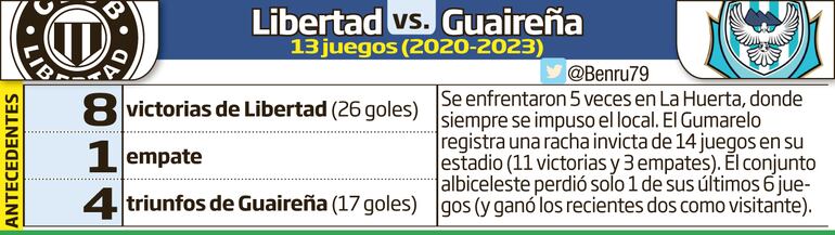 El campeón Libertad recibe a las 19:00 a Guaireña, un partido que el equipo dirigido por Daniel Garnero tendrá que tomar sus precauciones para no ser sorprendido por un rival que viene mostrando mucha lucha y entrega en este arranque de campeonato.