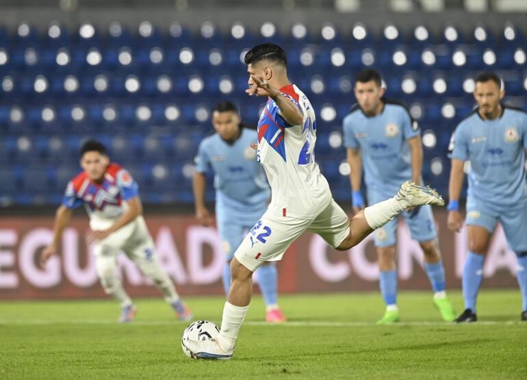 Claudio Aquino anota de penal con un remate al costado izquierdo.