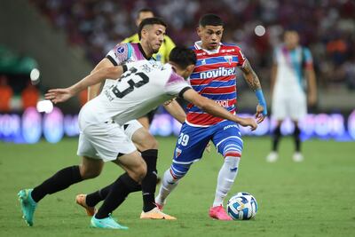 Melgarejo no pudo aprovechar el error de la defensa de Fortaleza y Tinga desvío el balón al tiro de esquina