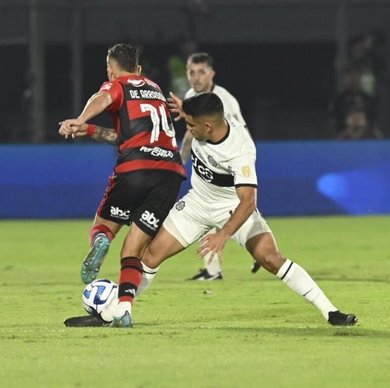 Olimpia presiona con todo en busca del segundo. Mateo Gamarra remató desde fuera del área y la pelota se fue muy cerca del palo izquierdo de Flamengo