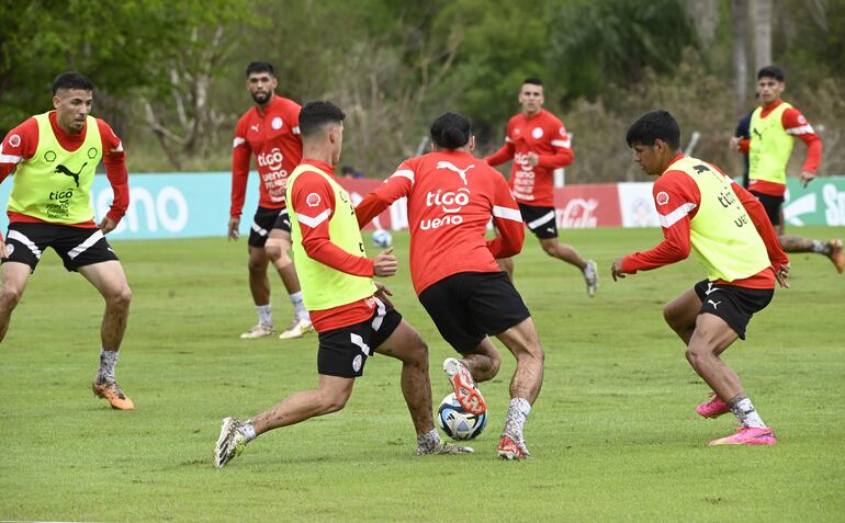 Después de la contractura muscular sostenida que lo sacó del partido contra Perú, Miguel Almirón se entrenó al mismo ritmo que los demás en las tareas desplegadas en la mañana de ayer en Ypané por el plantel dirigido por Guillermo Barros Schelotto.