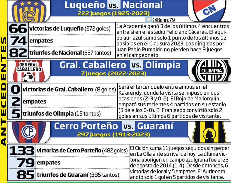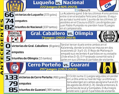 El Tricolor precisa ganar y que el vecino azulgrana pase la mano en el duelo frente al Legendario. Puede darse paridad entre Triqui, Aborigen y Albo, con 65 puntos (derrota de Guaraní y empate de Nacional) y en ese tren se beneficiará el Sportivo por mejores resultados en duelos entre sí. De ser así, La Academia va a la Libertadores por la Copa Paraguay, y Guaraní, a la Sudamericana.