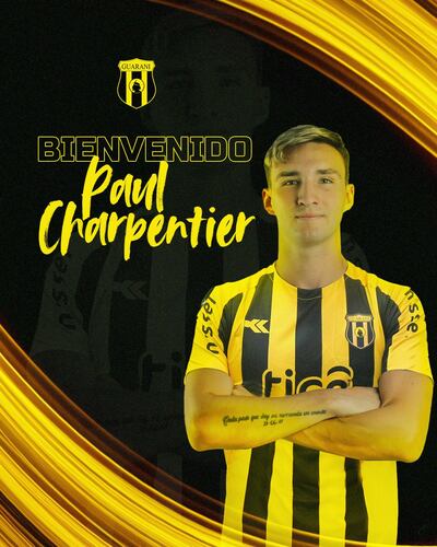 “OFICIAL | ¡𝖡𝖨𝖤𝖭𝖵𝖤𝖭𝖨𝖣𝖮 𝖠𝖫 𝗨𝗡𝗜𝗖𝗢 𝗗𝗘 𝗣𝗥𝗜𝗠𝗘𝗥𝗔 𝗖𝗛𝗔𝗥𝗣𝗘𝗡𝗧𝗜𝗘𝗥!. El delantero Paul Charpentier se suma al plantel legendario convirtiéndose así en el tercer refuerzo oficial para la siguiente temporada”, indica Guaraní a través de su cuenta en la red social X.
