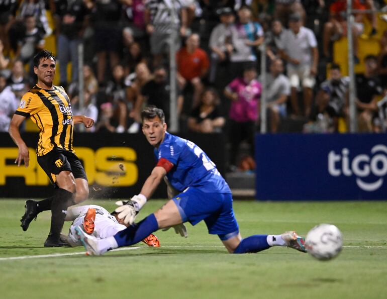 Roque Santa Cruz le dio de cachetada en el área y Gaspar Servio desvío al travesaño.