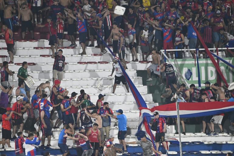 Pelea de hinchas y suspensión del juego en el Defensores