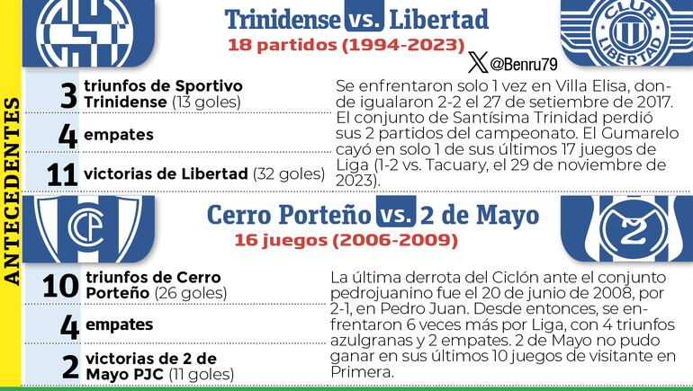 La jornada futbolera arranca a las 18:30, en Villa Elisa, escenario donde Trinidense hará de local frente a Libertad. El conjunto dirigido por José Arrúa no ha logrado puntuar hasta acá cayendo 3-1 contra Cerro Porteño y 2-1 frente al 2 de Mayo de Pedro Juan Caballero, dos juegos como visitante.