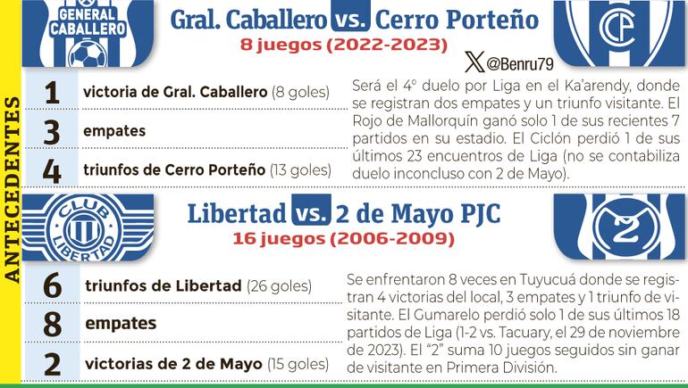 En el primer juego, el General Caballero JLM recibe la visita de Cerro Porteño, con la particularidad que en las gradas solo podrán estar presentes hinchas del elenco de Mallorquín.