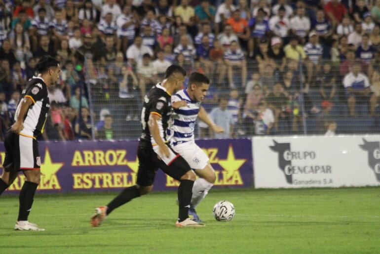 Matías Cáceres intentó con un remate desde fuera del área, el balón salió cerca del arco de Gustavo Arévalos