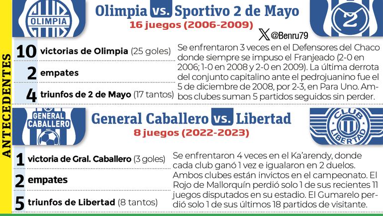 Todo arrancará en Sajonia, donde Olimpia ejercerá la localía frente al sorprendente Sportivo 2 de Mayo, en el encuentro marcado a las 18:40, en el estadio Defensores del Chaco.