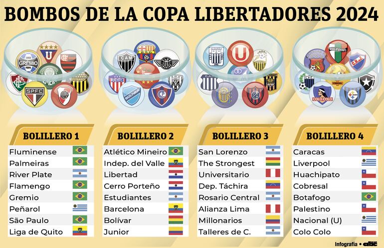Libertad (bicampeón del año pasado) y Cerro Porteño serán los dos equipos paraguayos en la Copa Libertadores 2024. Ambos se clasificaron directamente a la fase de grupos y esta noche conocerán a sus respectivos rivales en el sorteo en el que ingresarán al Bombo 2.