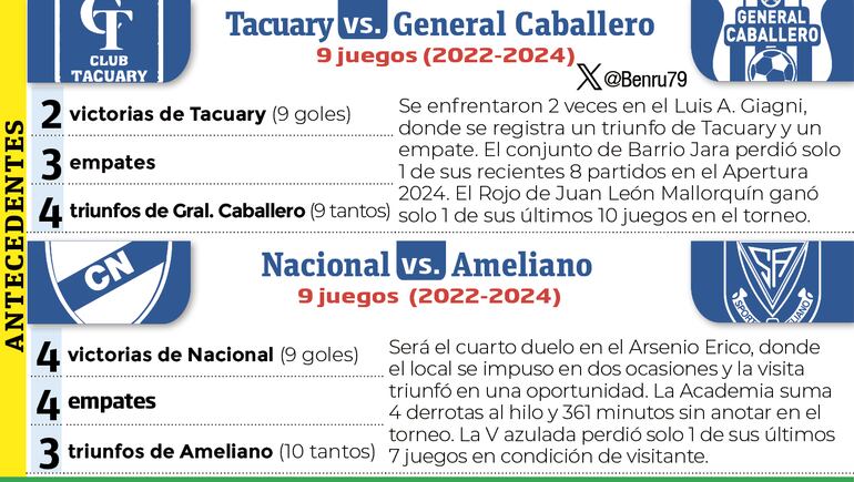 En el juego de fondo, Nacional y Sportivo Ameliano se citan, a las 20:30, en el estadio Arsenio Erico.