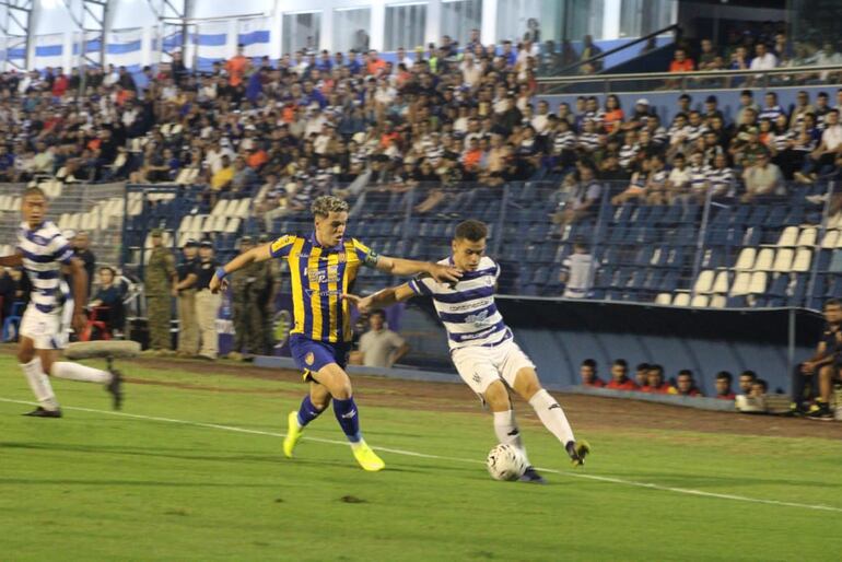 Pedro Sosa es amonestado por falta sobre Derlis Alegre
